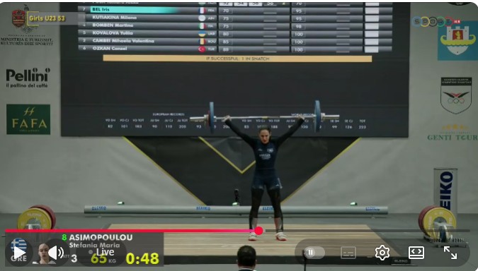 Συγκεκριμένα, στο αρασέ σήκωσε 65 Kg & στο επολέ ζετέ77 Kg. Συνολικά, με νέο ατομικό ρεκόρ, 142 Kg. Να υπενθυμίσουμε εδώ ότι το προηγούμενο ήταν 140 Kg.