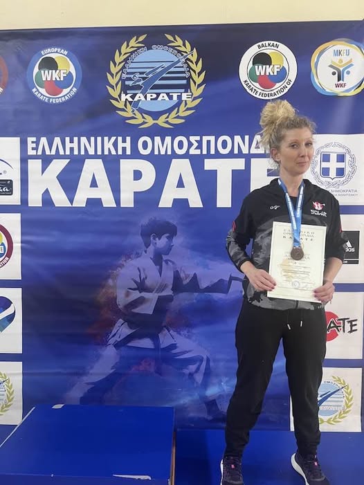 Το τρίτο σκαλί του βάθρου ανέβηκε η Κορίνα Αγιούς του σωματείου «Solar Karate» η οποία έλαβε μέρος στο Πανελλήνιο Πρωτάθλημα Ανδρών – Γυναικών – Βετεράνων, που διεξήχθη το σαββατοκύριακο (7/8-3) στο Κλειστό Γυμναστήριο «Γεώργιος Γαλανόπουλος» στο Λουτράκι