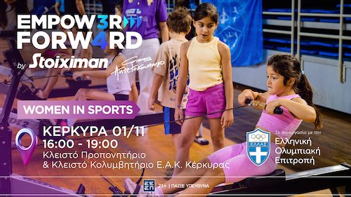 Το Empower Forward – Women in Sports, το πρόγραμμα εταιρικής υπευθυνότητας της Stoiximan, με πρεσβευτή τον Γιάννη Αντετοκούνμπο και σε συνεργασία με την Ελληνική Ολυμπιακή Επιτροπή, συνεχίζει το ταξίδι του σε όλη την Ελλάδα, φέρνοντας κοντά γυναίκες και κορίτσια που θέλουν να γνωρίσουν τη χαρά της άθλησης και της συμμετοχής. Μετά από μια πορεία γεμάτη ενέργεια και συγκίνηση σε Ιωάννινα, Ρόδο, Καλαμάτα, Χανιά, Μυτιλήνη, Σέρρες, Καστοριά και Αλεξανδρούπολη, το πρόγραμμα κάνει την επόμενη στάση του στην Κέρκυρα, το Σάββατο 1η Νοεμβρίου, για μια ακόμη μεγάλη γιορτή αθλητισμού, έμπνευσης και δύναμης.
