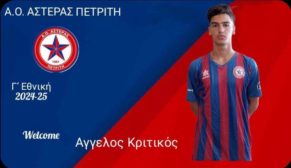 Και τον Άγγελο Κρητικό ενέταξε στο ρόστερ της η Διοίκηση του Αστέρα Πετριτή, ενόψει της έναρξης του Πρωταθλήματος της Γ΄ Εθνικής Κατηγορίας.