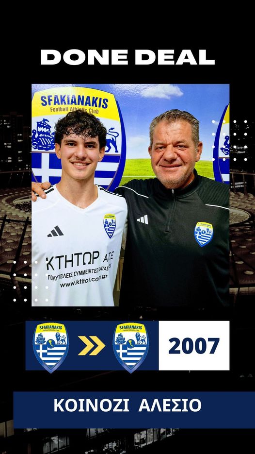 “Το Δ.Σ του Π.Α.Ο ΣΦΑΚΙΑΝΑΚΗ F.C είναι στην ευχάριστη θέση να ανακοινώσει την ανανέωση της συνεργασίας του με τον νεαρό ποδοσφαιριστή μάς