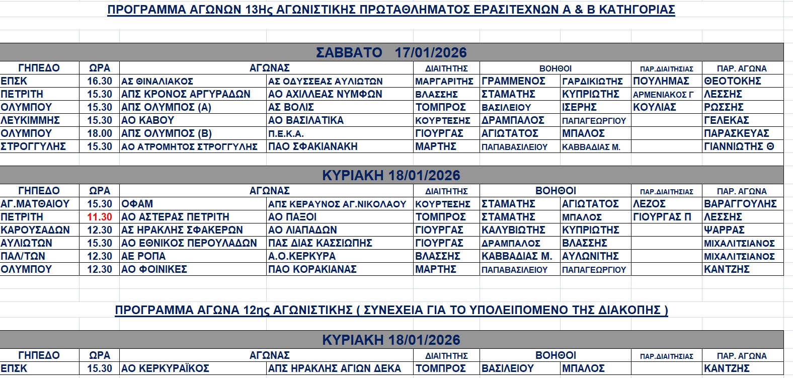 ΤΟΠΙΚΟ Α Κατηγορία: Το πρόγραμμα της 13ης αγωνιστικής, σαββατοκύριακο 17-18 Ιανουαρίου