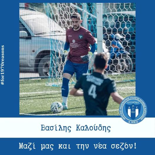 “Η οικογένεια της ΟΛΥΜΠΙΑΣ ΚΑΡΟΥΣΑΔΩΝ ανακοινώνει ότι ο Τερματοφύλακας Βασίλης Καλούδης θα είναι μαζί μας και την νέα σεζόν για να βοηθήσει την ομάδα μας να πετύχει τον στόχο της μετά την επιστροφή στην Α’ Κατηγορία Κέρκυρας.